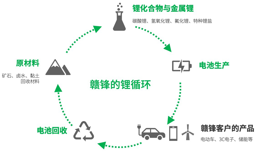 作為世界領(lǐng)先的鋰生態(tài)企業(yè),贛鋒鋰業(yè)業(yè)務(wù)貫穿上游鋰資源開(kāi)發(fā)、中游鋰鹽深加工及金屬鋰冶煉、下游鋰電池制造及廢舊電池綜合回收利用等價(jià)值鏈的各重要環(huán)節(jié),產(chǎn)品被廣泛應(yīng)用于電動(dòng)汽車(chē)、儲(chǔ)能、3C產(chǎn)品、化學(xué)品及制藥等領(lǐng)域。企業(yè)鋰礦資源遍布全球多個(gè)國(guó)家及地區(qū),同時(shí)擁有“鹵水提鋰”、“礦石提鋰”和“回收提鋰”產(chǎn)業(yè)化技術(shù);鋰化合物、金屬鋰產(chǎn)能居全球前列;具備電池制造及回收能力,為電動(dòng)車(chē)、電池、電子設(shè)備等廠(chǎng)商提供完整的原材料供應(yīng)、電池定制、廢舊電池循環(huán)利用方案。